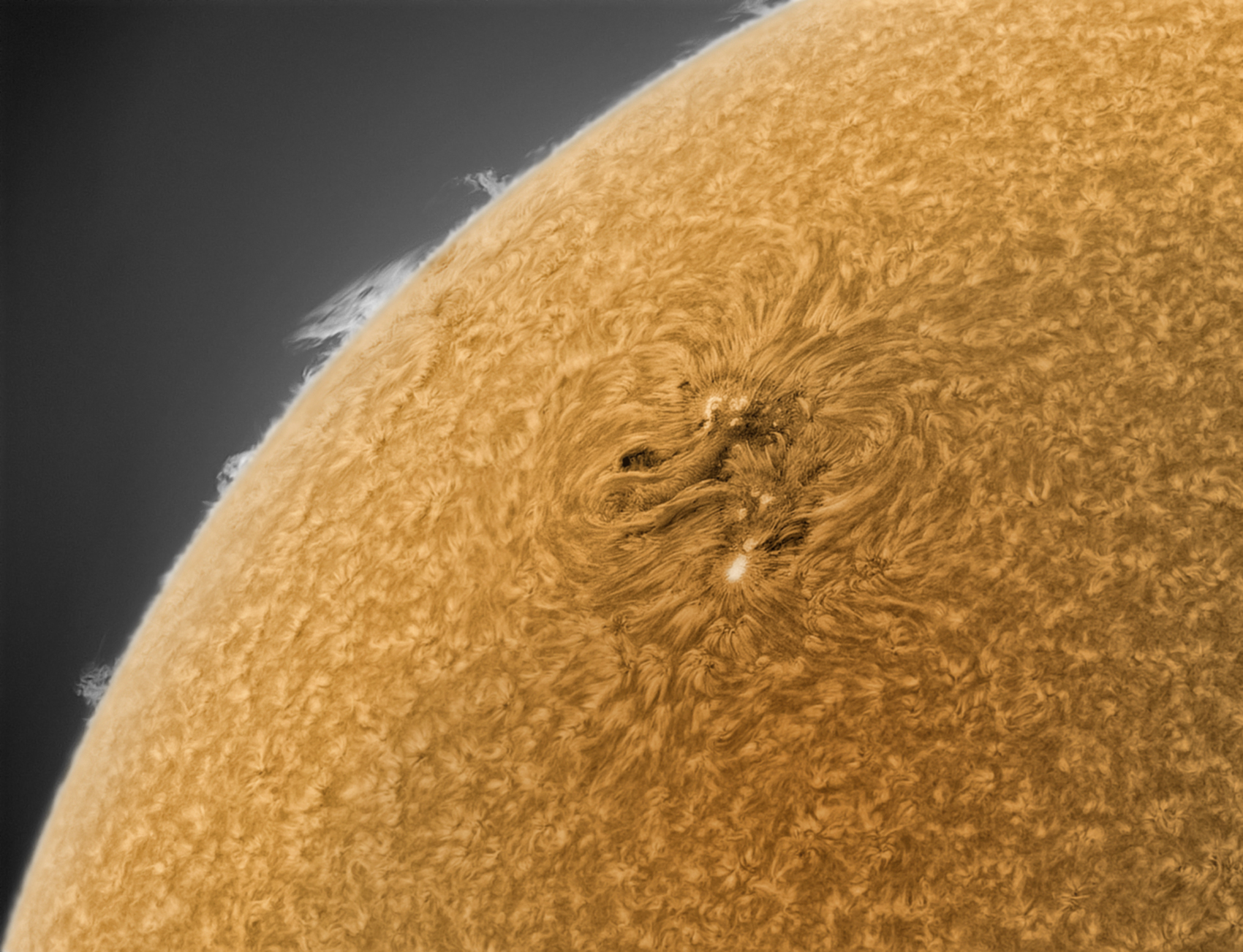 Fast in der Bildmitte ist eine aktive Region zu erkennen.