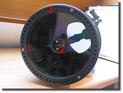 2) 3x Messing-Justierschrauben für den Fangspiegel
